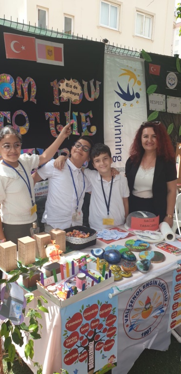 Etkinlikte, okulumuzun Türkiye ve Moldova ortaklığıyla yürüttüğü 12 ortaklı “Şimdiden Geleceğe” eTwinning projesi de yer aldı. Bu projeyle, Psikolojik Danışman ve Rehber Öğretmen Necla Şahin Ayhan ile 3-E Sınıfı Öğretmeni Hatice Yıldız, öğrencileriyle birlikte sergide aktif olarak yer aldı. Projenin yaygınlaştırılması amacıyla kurulan stantta, öğrencilerimizin proje kapsamında hazırladıkları çalışmalar sergilendi.